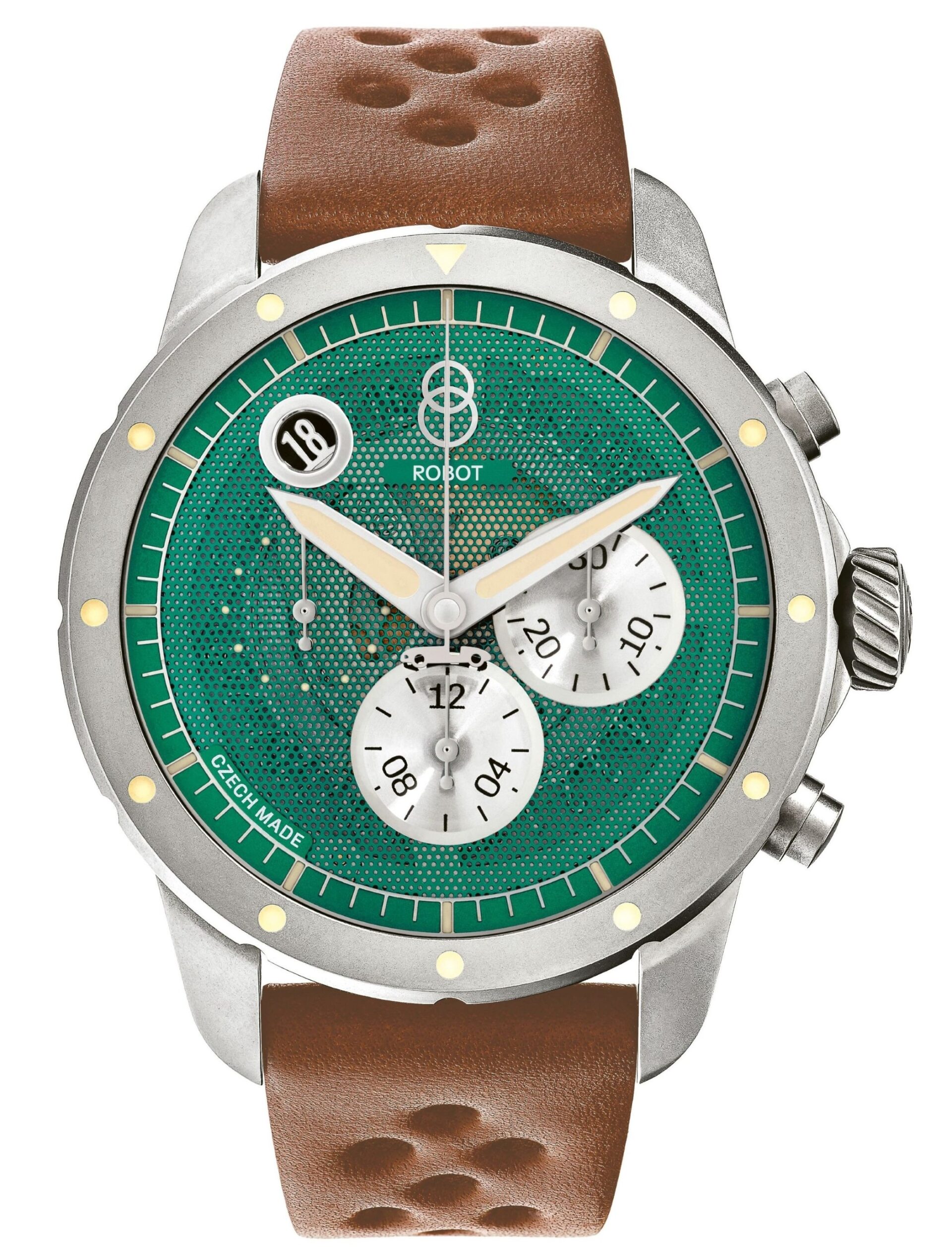 Sportovně zaměřený chronograf ROBOT MINOR je poctou závodníkům a legendárnímu českému automobilu Aero Minor Sport. Ten v roce 1949 vyhrál legendární závod 24 hodin Le Mans a dnes tuto legendu čs. motorsportu můžete opět vídat na závodních tratích a veteránských přehlídkách.
