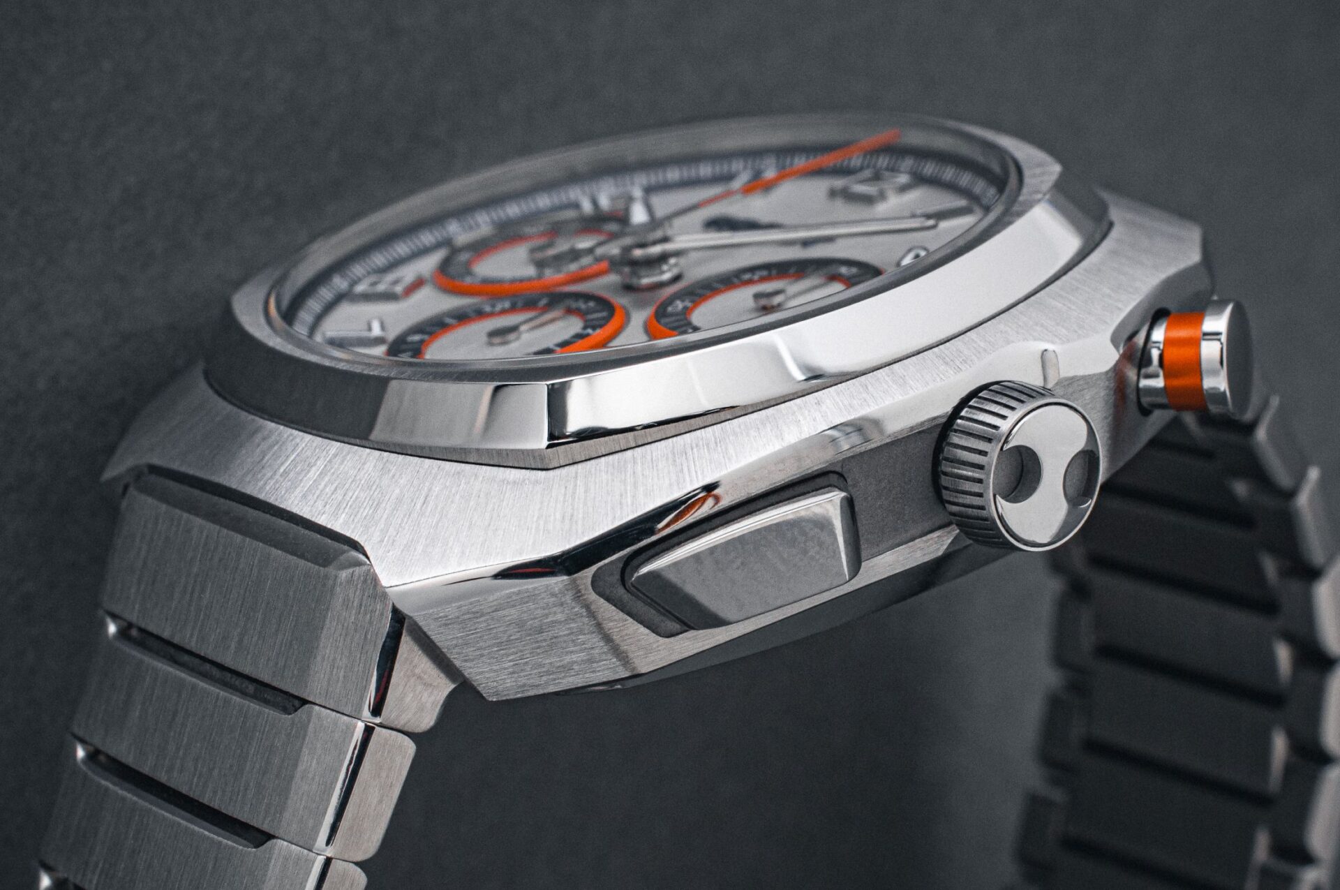 - Pouzdro a náramek z ušlechtilé oceli 904L, odolné proti poškrábání i korozi, s jemnou strukturou, která podtrhuje preciznost řemesla a dokonalý vzhled hodinek.